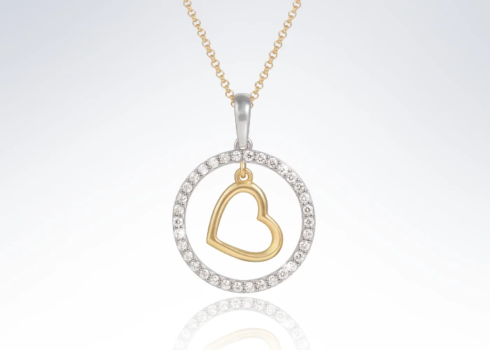 Элегантный кулон Loving Embrace из коллекции Enchant от Leya – воплощение утончённости и романтики. В его центре сияет изящное золотое сердце, окружённое ослепительным кольцом бриллиантов. Идеальное сочетание драгоценных материалов делает украшение не только символом любви, но и стильным дополнением к любому образу – как для дневных, так и для вечерних выходов.